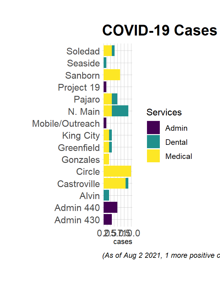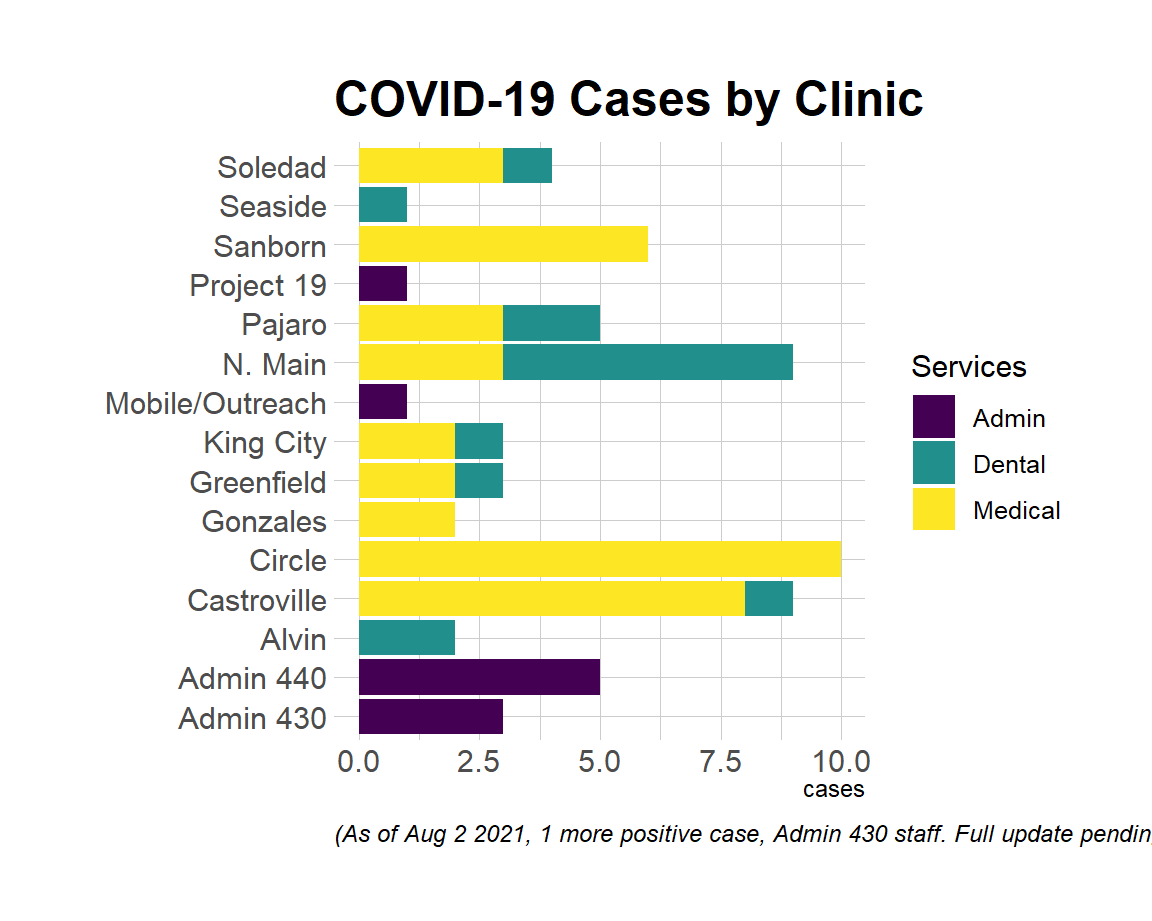 Admin group positivity rate with 10 positives (numerator update as of 8/2/21) out of 45 Admin staff (denominator change pending): 20%;